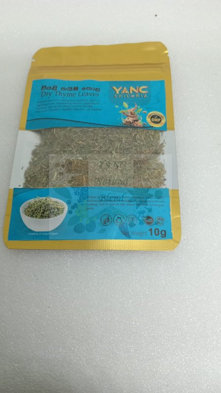 Thyme contains a variety of minerals and vitamins that promote goodhealth. Thyme is full of vitamin C for immune support, potassium for healthy cells, and manganese for bonedevelopment and blood clotting. Thyme is used for soups,roasted vegetables, pasta, sauces and pizzas.